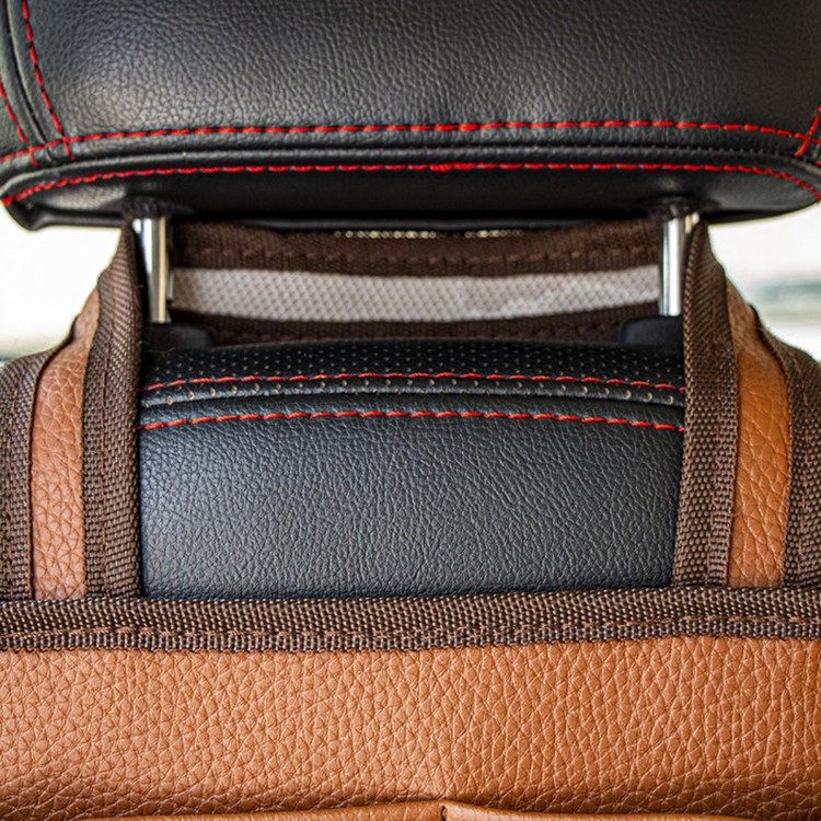 جنس چرم دارای6محفظه شامل : دو جای بطری و لیوان یک جیب مناسب برای دستمال کاغذی دو جیب در بالا جهت قراردادن موبایل و اشیای کوچک یک جیب بزرگ در پایین جهت قراردادن تبلت، کتاب ، مجله و ... نصب آسان و راحت دارای 2 بند کشی جهت نصب پشت صندلی خودرو