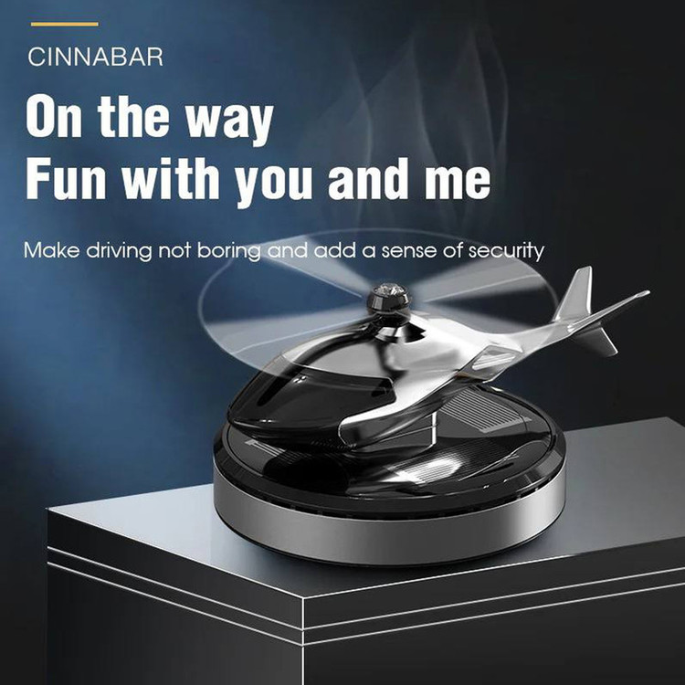 این محصول خاص مدل خورشیدی می باشد که بدون نیاز به باطری با نور خورشید پره های هلیکوپتر شروع به چرخیدن می کند و این محصول را میتوان روی داشبورد یا هر سطح صافی چسباند و این محصول دارای اسانس قطره ای خوشبو ادکلنی و قوی است که با اتمام اسانس می توان با هر اسانس که خودتون علاقه داشتید شارژ کنید . این محصول هم خوشبوکننده است هم تزیینی که زیبایی خاصی به خودرو شما می دهد