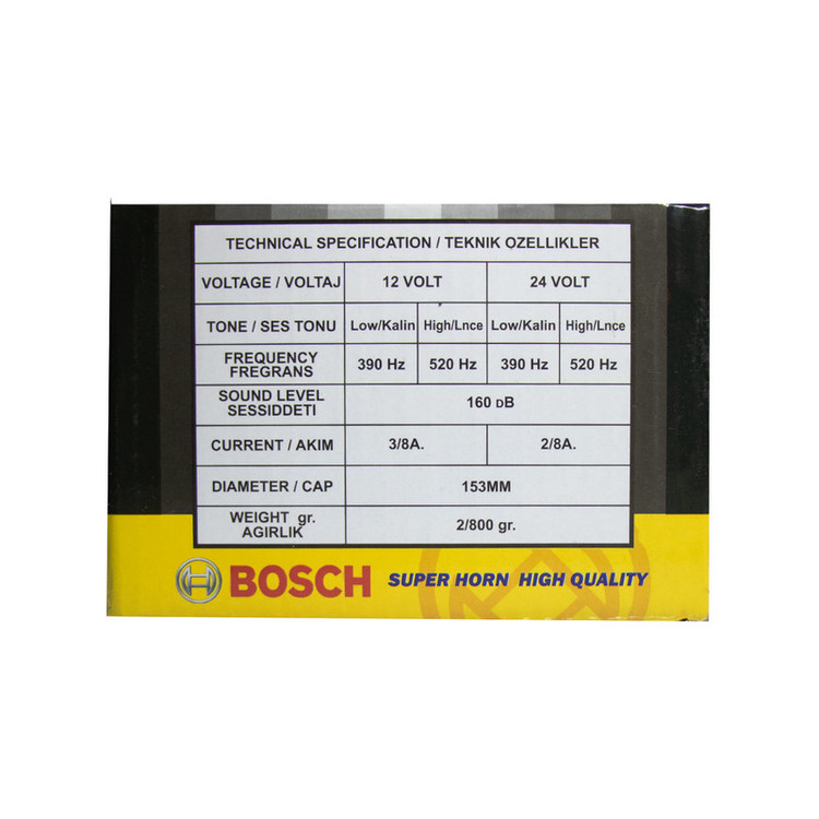 همه ما هنگام رانندگی با موانع و خطراتی رو به رو شده ایم . به همین منظور برای اعلان خطر نیاز به ابزاری برای اعلام حضور داریم بوق بوش مدل 10 11 بسته دو عددی نیاز شما را فرا تر از یک اعلام خطر برآورده میکند !. شرکت بوش یکی از برترین سازندگان این محصول است . اما این محصول توسط شرکت بوش آلمان ساخته نشده اما این دلیل بر کیفیت پایین این محصول نیست این محصول با افتخار ساخت ایران میباشد در این محصول تمام جزییات و آلیاژ های این بوق تا حد زیادی شبیه سازی شده . و به طور کلی صدا شباهت به بوق بوش فابریکی دارد . محصول ذکر شده دارای فیش و اتصال بدنه و رله مخصوص میباشد . این محصول دارای هولوگرام اصالت و کیفیت کالا میباشد . هنگام خرید حتما به هولوگرام دقت شود طرح هولوگرام در عکس کالا کاملا مشهود است .