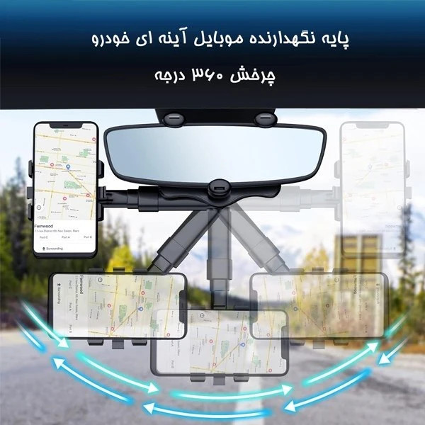 در عین حال که استفاده از موبایل در هنگام رانندگی لازم است، گرفتن موبایل در دست هنگام رانندگی میتواند خطرناک باشد. این محصول به راحتی بر روی آینه خودرو نصب شده و در نگه داشتن گوشی موبایل در خودرو و استفاده ی آن در حین رانندگی برای مسیریابی کمک میکند. جنس بدنه این محصول از پلاستیک ABS بادوام و با کیفیت است و طول عمر بالایی دارد و میتواند نیاز های شما را برای استفاده از موبایل در هنگام رانندگی و ... فراهم کند. همچنین این نگهدارنده با داشتن قابلیت چرخش 360 درجه این امکان را به شما میدهد که از موبایل خود به صورت عمودی و افقی استفاده کنید و در زمان نیاز آن را به راحتی تنظیم کنید و با وجود داشتن 3 گیره قابل تنظیم نسبت به اندازه ی آینه خودرو شما این محصول برای تمامی خودرو ها قابل استفاده است.