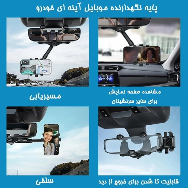 کیفیت درجه یک وارداتی ، جنس ABS , چرخش 360 درجه ، گیره مخصوص تنظیم ارتفاع ، نصب بر روی آینه خودرو 🚗