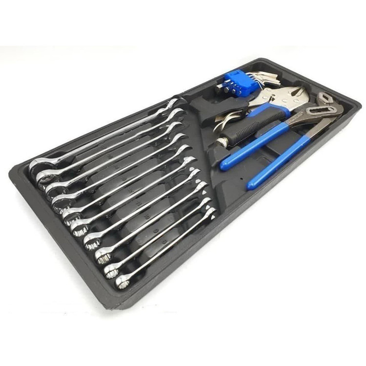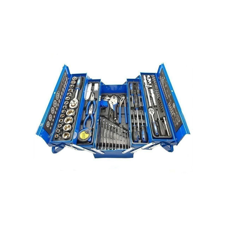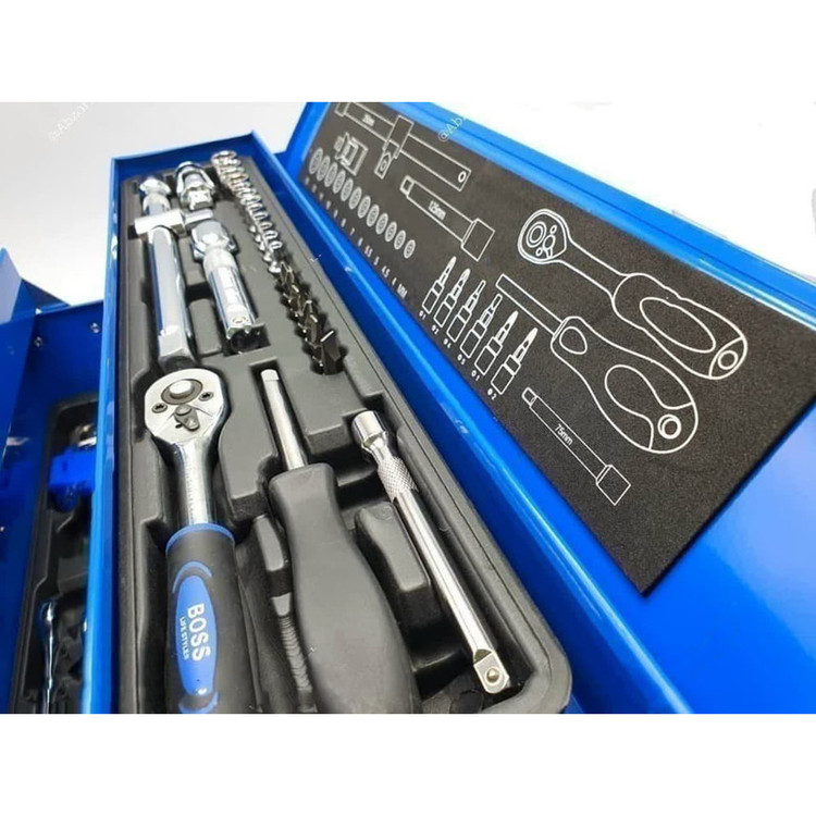 این مجموعه 85 پارچه بسیار نفیس و باکیفیت از برند خوشنام BOSS، از تولیدات درجه یک کشور چین است که به همراه یک جعبه ابزار فلزی مستحکم و مقاوم عرضه میشود. این محصول برخلاف جعبههای پلاستیکی یا کیفهای پارچهای عرضهشده برای بسیاری از مجموعههای ابزار، دارای عمری طولانی بوده و سالیان سال میتوانید ابزارهای خود را در این جعبه قرار دهید. این جعبه دارای سه طبقه بوده و با مکانیزم پلکانی از وسط باز میشود. دستههای دوگانه این جعبه نیز از فلز ساخته شده است. این مجموعه از لحاظ تنوع گونه شامل 4 قسمت اصلی است؛ قسمت اول که مهمترین بخش این جعبه را نیز تشکیل میدهد، مجموعه آچار باکس یا اگر بخواهیم صحیحتر بگوییم، Socket Set است. این مجموعه که مطابق با استاندارد متریک است، دارای 20 سری است که همگی از دهانه 1/2 اینچی استفاده میکنند. این سوکتها با اندازههای 10 ،11 ،12 ،13 ،14 ،15 ،16 ،17 ،18 ،19 ،20 ،21 ،22 ،23 ،24 ،27 ،30 ،34 و 36 میلیمتر در اختیار کاربر قرار میگیرند. یک عدد آچار جغجغه 1/2 اینچی با دسته فولادی لاستیکی نیز وظیفه چرخاندن این سوکتها را به عهده دارد. دو عدد اضافه کننده طولی نیز یکی به طول 120میلیمتر و دیگری 250 میلیمتر به همراه یک لق لقه 1/2 اینچی متحرک و یک لق لقه 1/2 اینچی ثابت امکان باز کردن و بستن پیچها را در تنگترین و دور از دسترسترین حالات، امکانپذیر میسازند. قسمت دیگر این مجموعه نیز شامل یک دست آچار، یک سر تخت و یک سر رینگ است. این مجموعه 10 تایی هم مطابق با استاندارد متریک بوده و شامل سایزهای 6، 7، 8، 9، 10، 11، 12، 13، 14، 15، 16 میلیمتر است. قسمت بعدی شامل 5 عدد پیچگوشتی بسیار باکیفیت است؛ سه عدد پیچ گوشتی دوسو و دو عدد پیچ گوشتی چهارسو. سایر ابزارها شامل انبردست، دم باریک، انبر قفلی و بسیاری دیگر از ابزار آلات که در تصویر مشاهده میکنید، است.