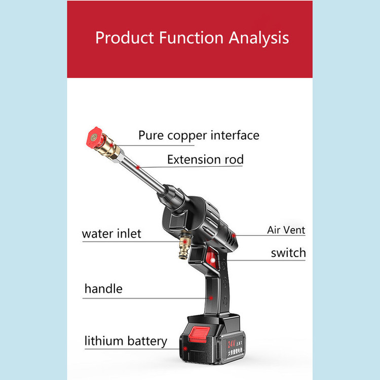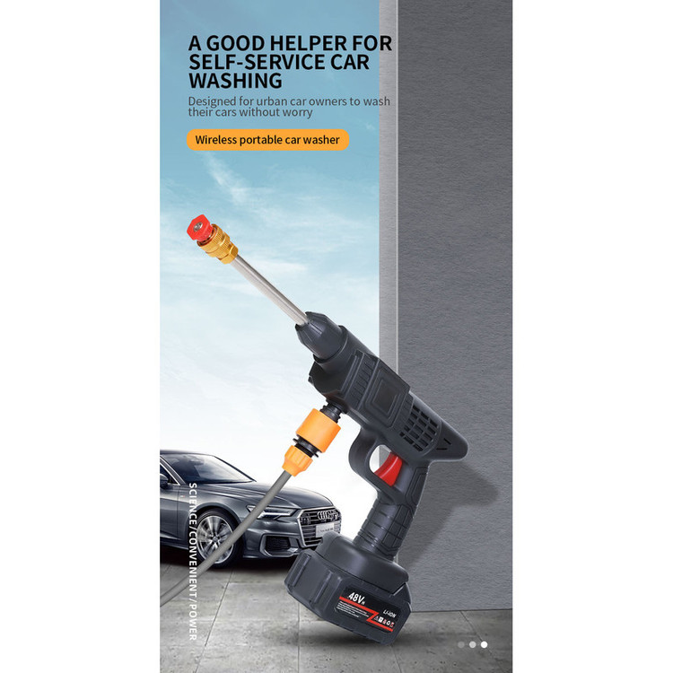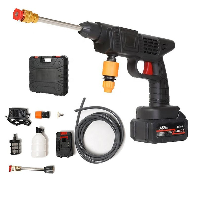 کارواش شارژی خانگی cleaning gun مدل K3 اصلی به همراه تمام متعلقات اورجینال با ۲ عدد باطری 48 ولت لیتیومی با قدرت 300 وات است .حسن این دستگاه نسبت به دستگاه های دیگر این است که از سری های برنجی استفاده شده است که نشکن است ودر اثر فشار نمیشکند. حداکثر جریان خروجی سیالات در این کارواش 4 لیتر در دقیقه می باشد و فشار آب در بازه 22 تا 30 بار است. ویژگی کلیدی این کارواش قابلیت تنظیم فشار برای نیازهای مختلف است. از مهم ترین کاربردهای این کارواش می توان به مواردی مثل سمپاشی، تمیزکاری و آبیاری، شستشوی خودرو، پارکینگ، استخر، مبلمان، باغ، دوچرخه و … اشاره کرد. کارواش های شارژی یکی از اقلام ضروری برای در هر خانه به شمار می رود. طراحی این نوع کارواش ها به گونه ای است که بدون نیاز به آب فراوان یا حتی برق می توان از آن استفاده نمود. با استفاده این کارواش می توانید به راحتی و با صرفه جویی در مصرف آب، تنها با یک سطل آب، آبیاری سریع و پرفشاری را در منزل ، باغ ، زمین کشاورزی و … تجربه کنید. . فشار آب این کارواش خانگی در بازه 22 تا 30 بار قرار دارد که ویژگی قابل توجه این کارواش قابلیت تنظیم فشار آن است که می توانید با توجه به نیاز خود و آلودگی محل مورد نظر، آن راتنظیم نمایید. معمولاً فشارهای پایین برای آبیاری گیاهان و فشار بالا برای شستشوی وسایل نقلیه و … مورد استفاده قرار می گیرد. طول پاشش این کارواش تا 5 متر می باشد. باطری های قابل شارژ این کارواش نیز باعث در دسترس بودن همیشگی این کارواش حتی در مکان هایی که به برق دسترسی ندارید شده است.