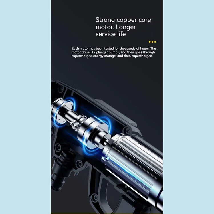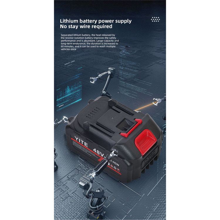 یکی از بزرگترین مزیتهای این کارواش، باتریهای پرقدرت و طول عمر بالا است. با دو باتری همزمان، شما میتوانید شستشو بدون توقف انجام دهید و حتی سطوح بزرگ را با سرعت و کیفیت بالا تمیز کنید. موتور قدرتمند این کارواش، فشار آب بالا تولید میکند که گل، آلودگی و گرد و غبار را به سرعت از سطح خودرو یا محیطهای دیگر پاک میکند.