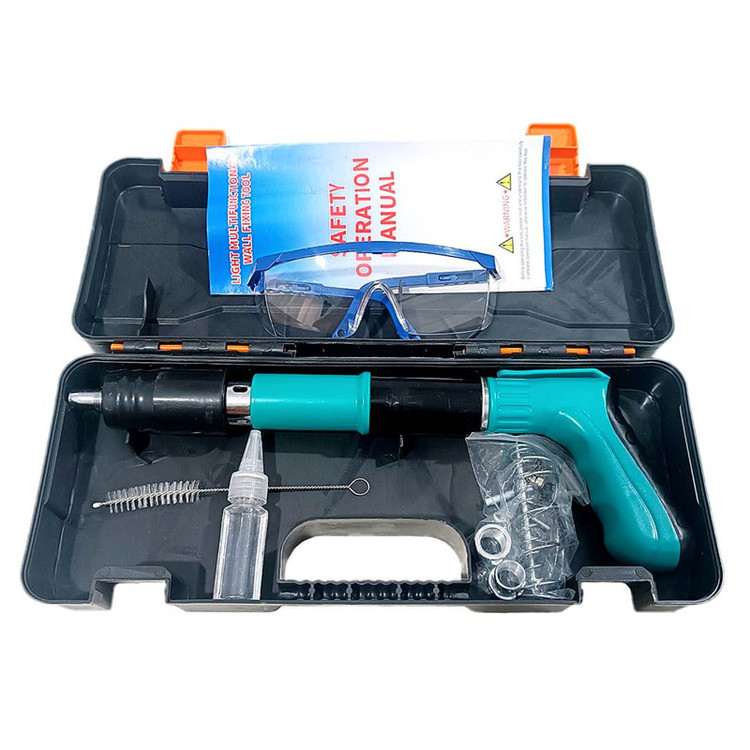 20 عدد میخ باروتی همراه ، عینک محافظ برس تمیز کننده لوله تفنگ میخکوب ظرف روغنکاری ست فنر اضافه سر تفنگی اضافه کیف قابل حمل، دستکش کار حرفهای