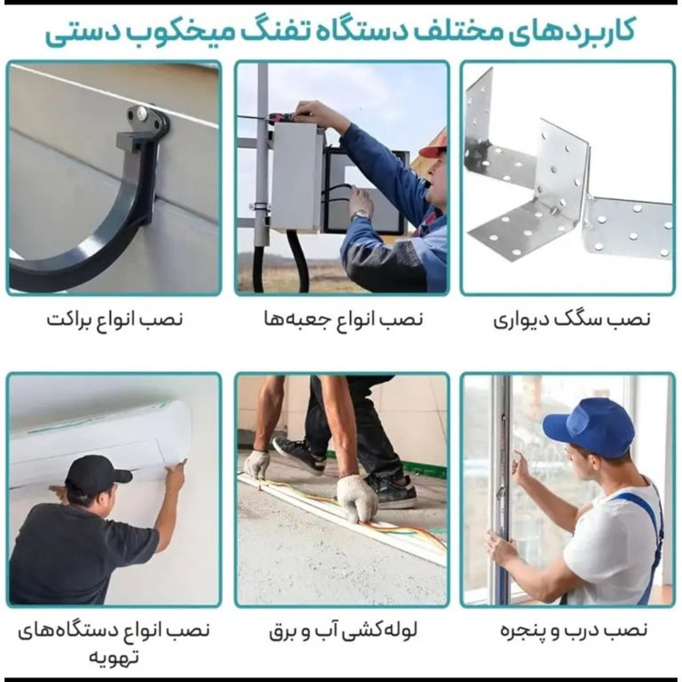 دستگاه تفنگ میخکوب دستی باروتی امکان استفاده در بتن چوب ، پی وی سی ، کناف ، فایبر گلاس پلاستیک ورق های نازک فلزی و ... را دارد از ویژگیهای اصلی این میخ کوب دستی قابلیت استفاده انواع میخ چاشنی دار تا 50 میلیمتر را دارد و کارکرد ساده و قوی دارا میباشد. این مدل میخ کوب دستی بدون نیاز به چاشنی انفجاری میباشد به این معنا که چاشنی در انتهای میخ قرار دارد و بسیار سبک كم حجم وقابل حمل میباشد این محصولی جدید و با فناوری به روز جهت جایگزینی برای میخکوبهای والتی کامرکس و سایر میخکوب های چاشنی دار میباشد و تفنگ میخ کوب ابزاری است مشابه تفنگ بادی که تفنگ میخکوب بتن برای اتصال پلیها و صفحات مختلف به بتن میباشد. البته مصارف دیگری از جمله اتصال انواع توریهای مشبک و غیره به صفحه های بتنی و مصالح ساختمانی را نیز دارد. چاشنیهایی که برای این محصول در نظر گرفته اند یک نوع و برای کوبیدن میخ در فلز یا بتن هستند نوع میخی که برای این دستگاه مورد استفاده قرار میگیرد از گونه های چاشنی دار و واشردار است. از این دستگاه در شغلهای مختلف از جمله کناف کارها، سقف کاذب کارها دیوار پوش و پنلهای دیواری و سایر کارهایی که با چوب و فلز سروکار دارند استفاده میکنند.