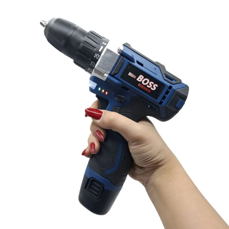 ⭐ مجموعه دریل شارژی با لوازم ابزار BOSS شرکت حرفه ای ابزار آلات برقی BOSS ; با تولید دریل پیچ گوشتی چکشی شارژی صنعتی مدل 18V قدرت خود را بر رخ رقیبان بزرگ کشید . این دستگاه جایگزین مناسبی برای پیچگوشتیهای معمولی است و موجب بالا رفتن سرعت کاربر در حین کار میشود و باید برای این منظور مجموعهای کامل از سریهای پیچگوشتی تهیه کنید. این محصول با توجه به سرعت چرخش بالایی که دارد، در حالت دریل نیز عملکرد خوبی خواهد داشت. سرعت این محصول قابلکنترل است و کاربر میتواند آن را در دو بازهی 0 تا 500 و 0 تا 2200 دور بر دقیقه تنظیم کند. گشتاور این دریل پیچگوشتی چکشی نیز مانند سرعت آن قابلتنظیم است. میزان ترکمتر و هرزگرد این دستگاه قابل تنظیم است. این محصول دارای 2 باتری شارژی لیتیوم یونی با طول عمر بالا بوده که ولتاژی 18 ولتی و ظرفیتی 1500 میلیآمپرساعتی دارند. وجود سهنظام اتومات 10 میلی متری بسیار با کیفیت از دیگر مزایای این دستگاه است که موجب افزایش سرعت تعویض مته و سری پیچگوشتی میشود. تمام ویژگی های مثبت و کیفیت این دستگاه باعث شده که این دستگاه در نوع خود بی رقیب باشد. بستن ✔ باتری استاندارد ( قابل استفاده در کلیه دستگاه های بازار)✔ دو عدد باتری 18 ولت اصلی ✔ گیربکس دو دور✔ دور0 تا 500 و 0 تا 2200 دور بر دقیقه✔ قابلیت کنترل سرعت فشاری✔ به همراه لوازم همراه؛ مته آهن( سایز 4 و 5 میلیمتر)، مته چوب( سایز 4 و 5 میلیمتر)، مته دیوار(سایز 5 و 6 میلیمتر)، رابط فنری تاشونده، دو عدد نوک پیچ گوشتی چهارسو، دو عدد نوک پیچ گوشتی دو سو، نوک پیچ گوشتی ستاره ای بکس(سایز 5، 6، 7، 8، 9، 10، 11، 12 و 13 میلیمتر)، تبدیل بکس خور سر دریلی سایز 1/4، مته شیشه سایز 10✔ چراغ قوه روی بدنه دستگاه جهت محیط های کم نور✔ موتور بزرگ و تمام مس✔ کیف BMC✔ کیفیت عالی